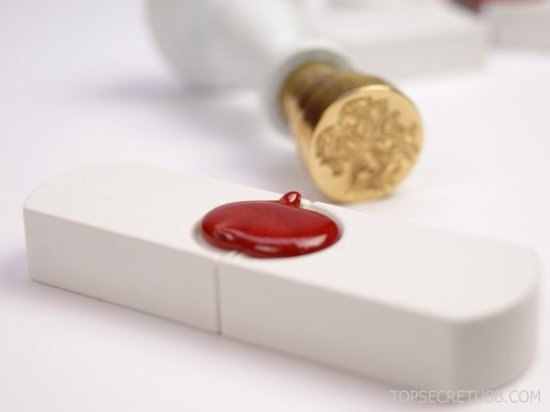 The Top Secret USB drives are trying to bring back the practice by being specially made to be sealed. The body of the drive is made out of porcelain which, besides being snazzy, can hold up to the heat of the seal. Also, there’s a little indentation especially for the seal. It’s not perfect since I imagine the stamps are mass produced and I’ll bet that if you really wanted to get in unnoticed, you could probably freeze the drive, pop off the seal, heat the drive up a little and have the seal melt back down a little from the bottom. Still, it’s neat and it’s not like you can’t also just throw a password on there to be safe.