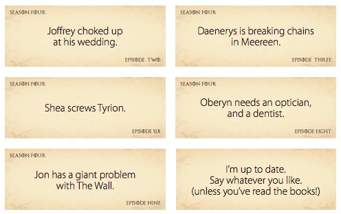 We were just talking about a high-tech way to avoid spoilers the other day, this is exactly the opposite. Here’s a sample of what you can expect from Season 1: