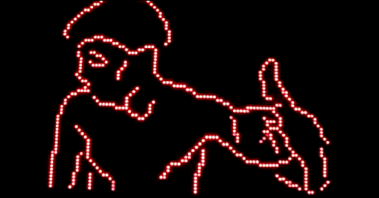 Over on Limpkin’s blog, Mathieu managed to make a webcam’s output display on a 96×64 bi-color LED display, generating something that looks like a Lite-Brite displaying a live feed. The webcam stream is captured using Matlab, with only 50 lines of code capturing a frame, sizing it, converting the frame to black and white for accurate edge detection, then compressing the image data and and transmitting it to the processor. The Lite-Brite style display shows images at around 42 hz.