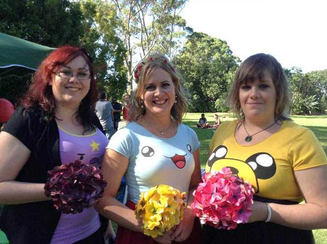 It’s wedding time! Come on, grab your friends. We’ll go to very distant lands. Like New Zealand! That’s where this latest geeky wedding took place. Che Saunders and husband Ford are animators in Auckland so it’s not such a big surprise they decided to go with a themed wedding. And they were helped with the theme by dressing up the wedding party in Adventure Time and Bravest Warriors items from WeLoveFine!
