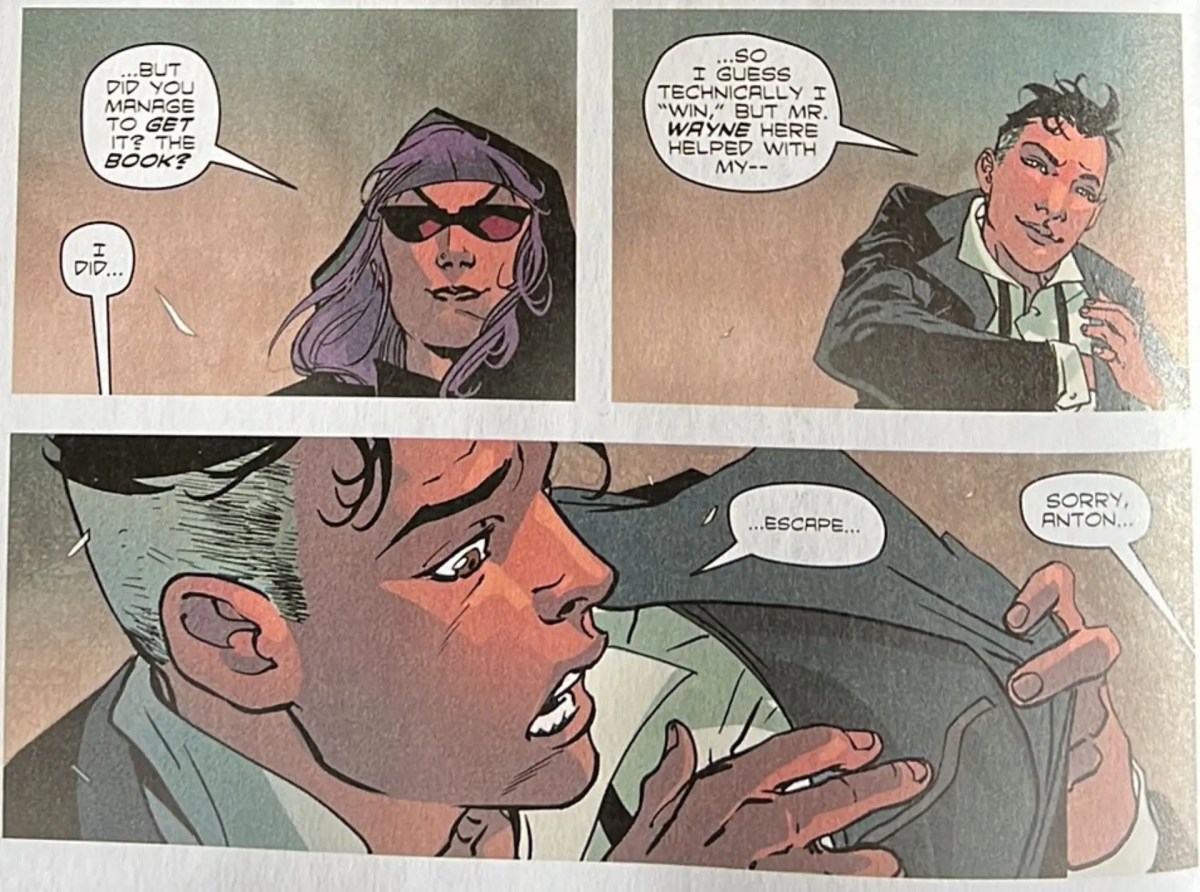 The next page sees Bruce absconding with a book taken from Anton. So was Bruce just playing at his attraction, or was he genuinely interested in Anton? Fans were quickly buzzing with excitement over the possibility of a bi Batman and his chemistry with Anton. And fans haven’t been this horny since Batman’s infamous full frontal scene in Batman: Damned by Brian Azzarello (Wonder Woman) and Lee Bermejo (Joker). Hey, give the people what they want!