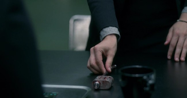 Back at Westworld HQ, Maeve is being repaired by Felix and Sylvester. While Sylvester runs off at the mouth like a douche, Felix is a bit suspicious of Maeve, commenting on the fact that the knife wound he fixed was a “contained incision. Almost as if they were looking for something.” Suddenly, Maeve’s hand jerks before he can get too close to inspect, and Sylvester laughs at him for being afraid of her, thinking that the reason Maeve escaped last time was that Felix forgot to put her in sleep mode. They part for lunch: Sylvester to enjoy a ham sandwich and a VR “nubile redhead,” and Felix to…the dead bird in his locker? Eeew. [Maddy: I was surprised to hear Sylvester referring to VR here. Does he prefer VR as opposed to having sex with a robot? Would having sex with a robot feel too much like being “at work,” for him, since he repairs robots for a living?]