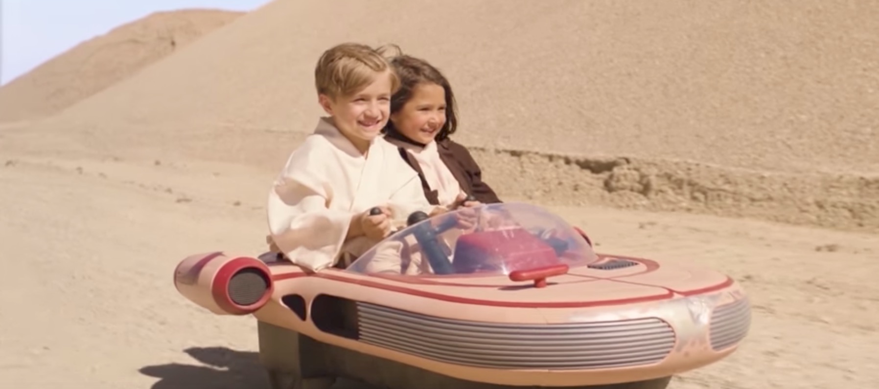 Radio Flyer announced this morning that they’re coming out with a (Pow-Pow-)Power Wheels-like drivable wagon for kids based on Luke Skywalker’s X-34 landspeeder in A New Hope. The commercial’s … ehhh, but the prospect of watching a bunch of little kids driving around in speeders warms my cold, dead heart.