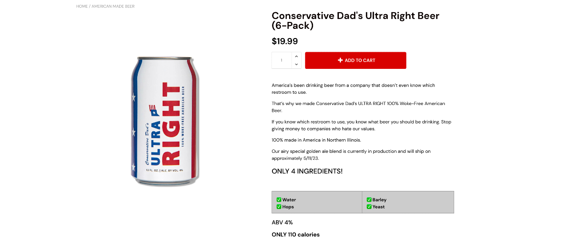 And Ultra Right beer has taken up the torch.