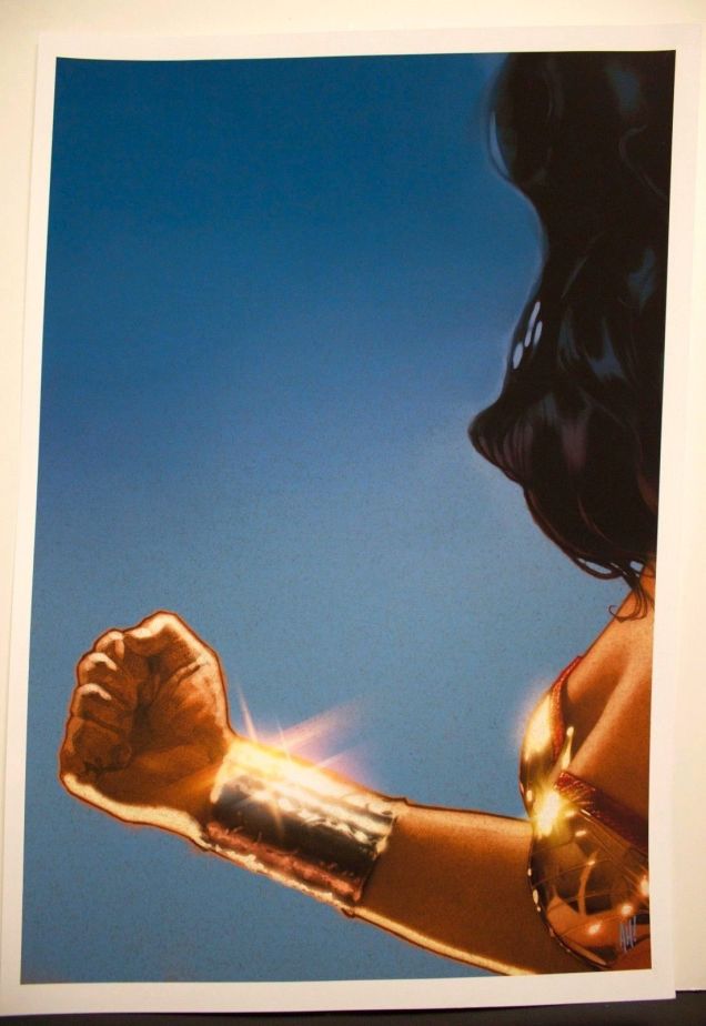 Adam Hughes designed this poster for San Diego Comic-Con back in 2005, art that was meant to serve as promotional material for the DC film which would never be. The original pencil sketch and print are now available on eBay as part of a charity auction to benefit Clydene Nee, an organizer of SDCC’s artist alley who is currently battling kidney failure. Luckily, even if you don’t have a few grand sitting around for charity/awesome art, we can still gaze upon its majesty. Just imagine Morena in those cuffs. If only.