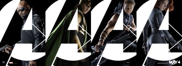 Although not every single image coming out of Marvel’s promotion of The Avengers features Johansson rear end (The Beat has a couple face-forward), we’ve caught a few so far. For instance, here are the first official posters for the film. We’re still debating whether or not Loki is indeed also showing us his butt but ScarJo definitely stands out from the rest of her team.