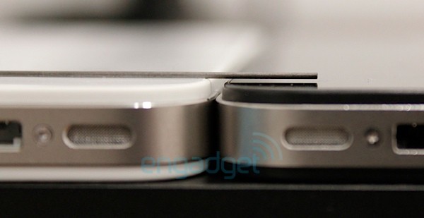Engadget confirmed the change in thickness, taking a handy snapshot of a piece of mechanical pencil lead used to compare the thickness between the regular iPhone 4 and the white one: