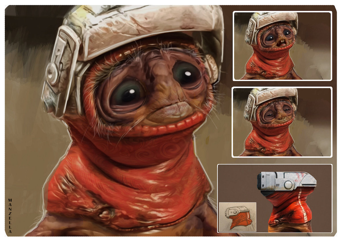 During production, Babu Frik was the brainchild of several parents. Creature designer and sculptor Ivan Manzella told the Force Material podcast that when he was designing Babu Frik, he was inspired by Victor Wong’s character Egg Shen in the John Carpenter film Big Trouble in Little China. Creature and makeup effects supervisor Neal Scanlan, who worked on all five Star Wars feature films since Disney’s acquisition of Lucasfilm, described his inspiration as coming from memories of actor Ernest Borgnine’s expressive range.