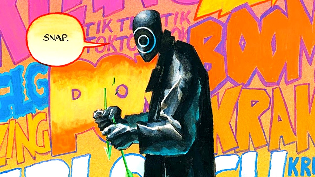 In addition to his eerie appearance, he only speaks in sounds, which earned him the name Onomatopoeia. This characteristic works well in comic book form, where his speech bubbles feature him, for example, mimicking gunshots with the word “BLAM.” It was also revealed in the comics that Onomatopoeia lives a double life. When he’s not the masked serial killer, he leads a normal life as a husband and father in Gotham, with his family seemingly unaware of his homicidal tendencies.