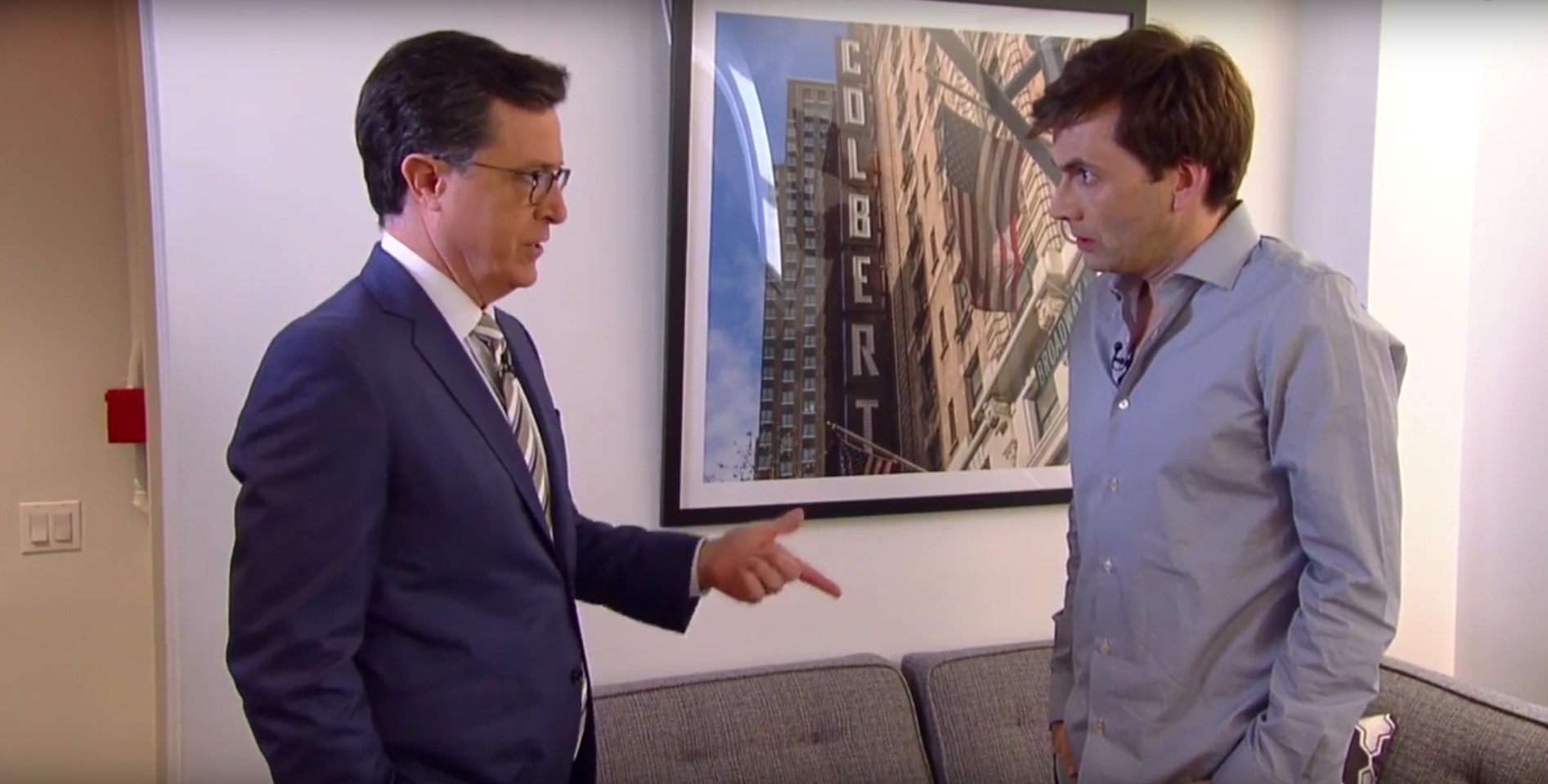 I knew I couldn’t be the only American Whovian whose brain constantly went to the “Who’s on First?” place when thinking about Doctor Who. In a recent promo for The Late Show, Stephen Colbert and guest David Tennant get into a wonderfully confusing chat about a role that Tennant is famous for. Check it out above.