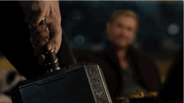 In the Avengers: Age of Ultron clip, Tony Stark speculates that there is a biosensor in the hammer’s shaft that recognizes when Thor has grasped Mjolnir. He is correct, in a sense—though it is not Thor’s fingerprints that the hammer is reading. Most likely it is taking some complex biological and psychological profile that calculates the “worthiness” of whoever is trying to lift the hammer. This is consistent with the scene in the clip where Steve Rogers (Captain America) is able to move the hammer (albeit slightly), while Tony Stark and Jim Rhodes, using thruster-assisted Iron Man and Iron Patriot gloves, are unable to budge Mjolnir at all.
