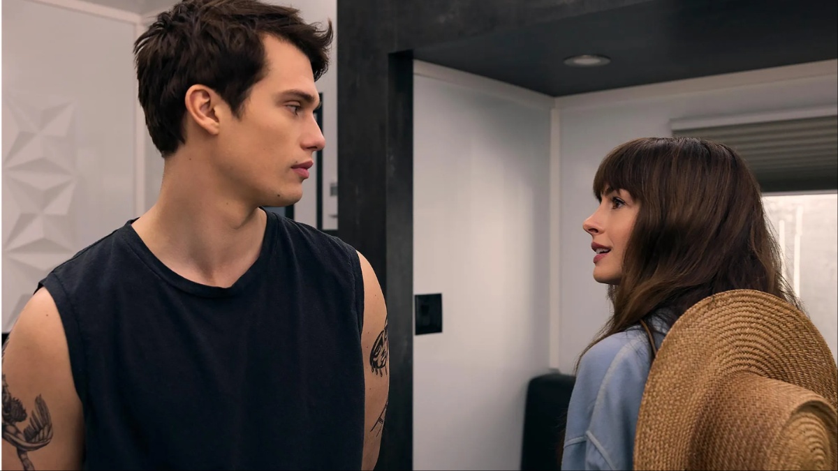 There is much less emotional manipulation and high-stakes gamesmanship in The Idea of You, which sees 40-year-old divorcee Solène (Hathaway) finding a romantic spark with 24-year-old boy band singer Hayes (Galitzine). While Solène is portrayed by the seemingly ageless Anne Hathaway (which makes the film’s discourse over their age gap almost laughable), the film keeps its focus on Hayes as the object of lust. In several scenes we watch Solène watching Hayes: from backstage on his European tour, from the crowd at Coachella, and even on television. And it tracks, as Hayes is a celebrity in this world, so the focus would undoubtedly be on him.