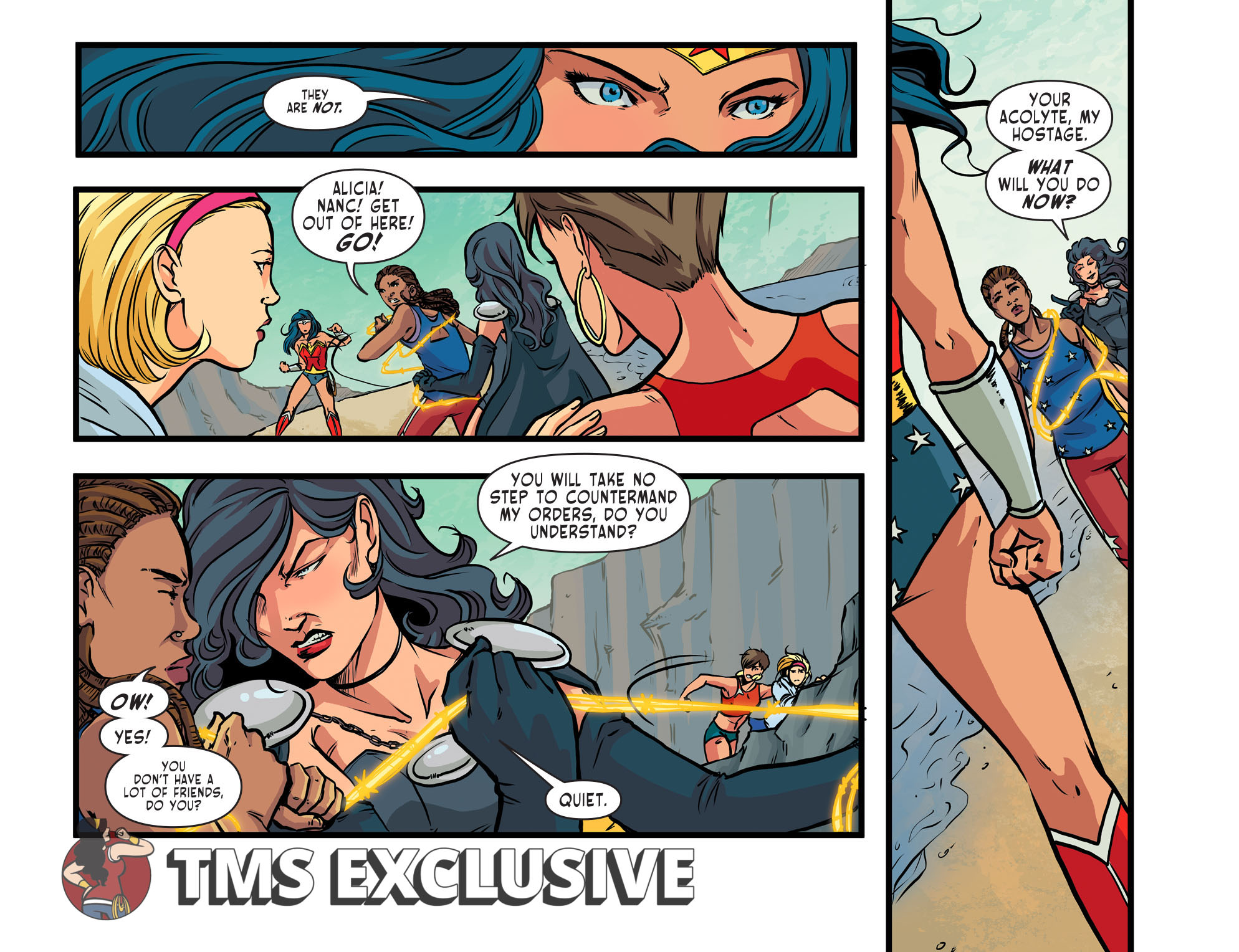 Chapter 46 is the second part to a three-part story arc written by Barbara Randall Kesel! Superwoman thinks Diana’s concern for these human teenagers is the weakness that will allow her to take Wonder Woman down. But her lasso of thorns is no match for the lasso of truth! “Besties” part 2 of 3.