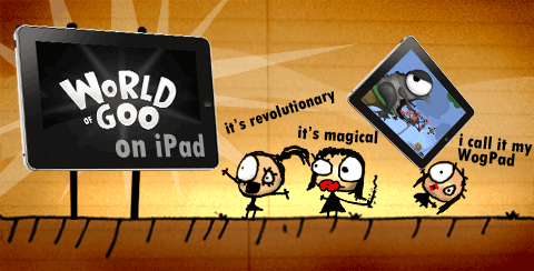 World of Goo, the wildly and deservedly popular goo-centric puzzle game by developer 2D Boy, is headed to Apple’s iPad once Apple approves the game, which 2D Boy hopes is before the holiday season. Almost as importantly, in a 2D Boy FAQ, they let us know that referring to our iPads as WogPads once we get World of Goo installed is a solid plan.