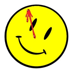 The comic cheerfully lampoons some of its notable forebears, especially Alan Moore’s Watchmen, going so far as to feature a crowd scene in which a red-headed vagrant carries a sign declaring “THE END IS STILL NIGH,” and Spider’s first appearance in the book bears a remarkable resemblance to Moore himself, not to mention the infamous smiley face logo.