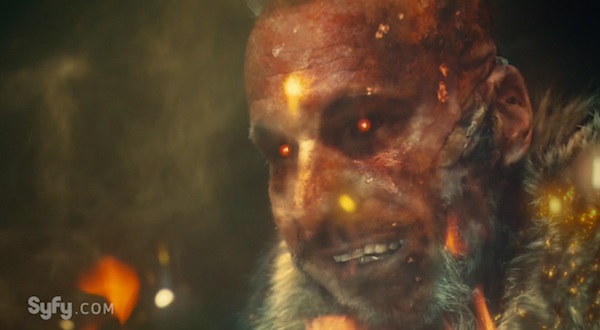 Wynonna is hot on Willa and BoBo’s trail, and BoBo works his magic to disarm the two. However, a grenade is hard to come back from. It knocks out Doc and BoBo, leaving Wynonna and Willa to face each other. Willa marches straight through the Triangle and all hell breaks loose. The sky turns dark, and something massive and angry begins to tear up the earth beneath Willa’s feet. Willa seems awful proud of herself, and any stitch of family connecting her and Wynonna starts to fray. Even Willa’s connection to BoBo fades as her revenge fantasies come to life. Turns out, they’re standing in the place their mother took them to seek refuge from her abusive husband. (Ward was a real SOB.) Wynonna offers to start things over with Willa, but big sis is too far gone. There was another who promised Willa big and terrible things, not just BoBo. Someone BoBo calls “The Dark One.” Willa wants to save Wynonna by killing her, but that’s not going to fly, so the sisters draw their guns on each other.