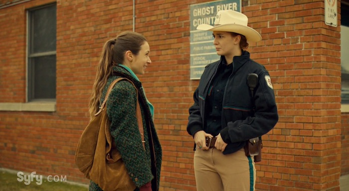 Officer Haught finds a pissed off Waverly walking along the frigid road. Don’t worry, Waverly has her white hot embarrassment from earlier to keep her warm. She is eventually won over by Haught and her dimples, and hops in the cruiser where they enjoy their first lesbian processing event. Between Gus selling Shorty’s and these new and intense feelings for another woman, Waverly is feeling lost and frustrated. Haught can’t seem to say anything right, and her attempts to comfort Waverly, just confuse her even more. It’s a scene that is utterly recognizable for any queer girl, especially when Waverly tells Haught they can be friends. For Haught, who thought they were finding common ground, it stings.