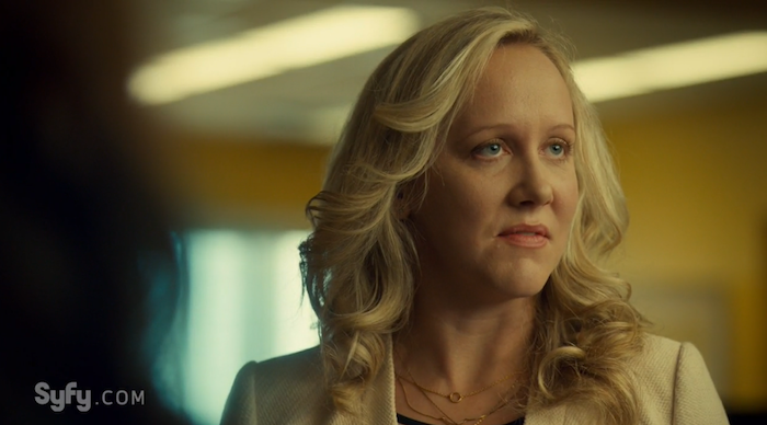 Dolls gets an ID on the woman what Megan was begging forgiveness from and it’s another one of Wynonna’s old enemies from high school, Samantha “Perky Tits” Baker. (Frankly, it’s better than my high school nickname, but I digress.) Samantha hadn’t seen Megan in years, and was shocked to see her the day before. It turns out that the night of a big end of year bash, Megan accidentally killed Samantha’s father in a hit and run. Samantha didn’t grant Megan forgiveness, and now Megan is dead.