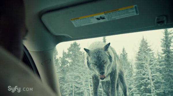 Elsewhere in Purgatory, a young woman dressed in all white stumbles onto a gas station run by a Revenant. The Rev is all ready to do his Rev thing until he sees that the young and very distraught woman is marked with two black lines down one side of her face. It’s enough to scare him shitless, and as he yells at her to leave, she asks him to tell her mother that she’s sorry she ever ran off. Then we see what the Rev was so frightened of—a vicious wolf that tears the poor woman apart.