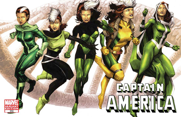 Also, be not alarmed by the words on the art! These covers ran over the gamut of Marvel’s issues, so the titles may have nothing to do with the X-Man behind them. Or maybe Rogue guest starred in Cap’s comic?