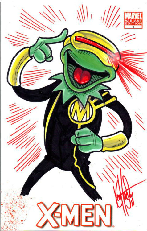 It’s not easy being green and shooting high powered optic blasts. Ken Haesner, cartoonist and creator of The Living Corpse, Warmageddon, and The Jersey Devil has combined eccentric, yet adorable, Muppets stars with the troubled mutants we all know and love, to create: The X-Muppets. Hit the jump to see the rest of the misunderstood, fuzzy gang!