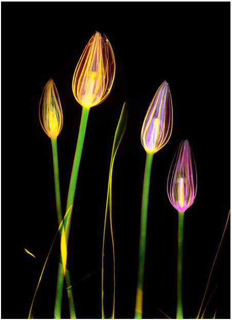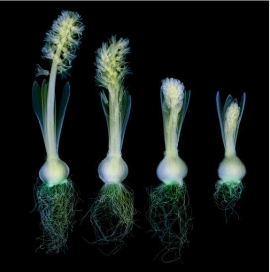 It might not look like it, but the picture above is a dozen roses. It’s the work of artist Hugh Turvey, who runs flowers through colored x-rays to produce striking, ghostly images.