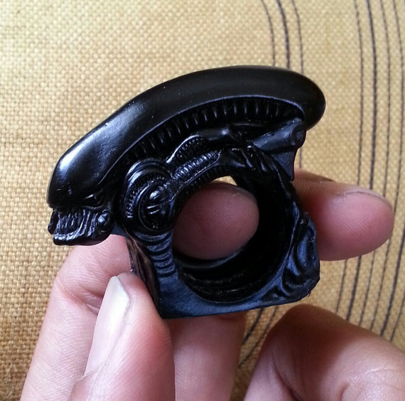 Sure, it looks just like the sort of clunky, sci-fi inspired ring that any person might deign to wear about their pretty little finger, but Kilroy’s Attic crafted it with a crazy, secondary, impractical form. Brass knuckles. The jewelry is not recommended for actual use as a weapon, because, well, its so pretty, but also because not a good idea to ask someone to wait for you to unfold your brass knuckles before starting a fight.