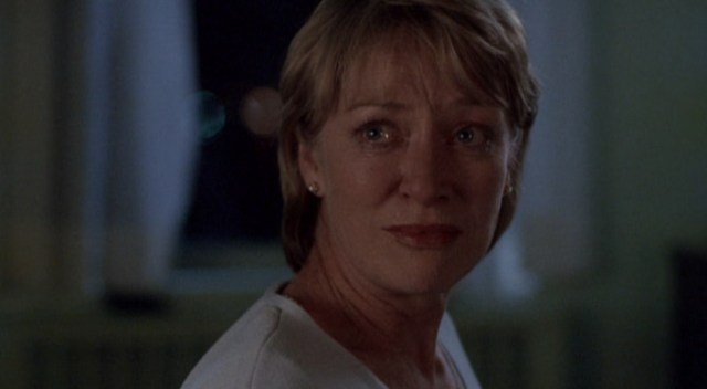 Mulder interrupts this beautiful love scene by demanding to be taken to an old cemetery, specifying “the creepier, the better.” He leaves Scully to do an autopsy and helpfully advises her that he doesn’t know what she’s supposed to be looking for. She dutifully goes ahead. The deceased’s last meal was pizza and this gives her a flash of inspiration. Back at the motel, she kicks off her shoes and prepares to relax after a long day. Then Mulder reappears, covered in mud. She raises an eyebrow and informs him that the victim was doped with chloral hydrate before being attacked. Mulder barely flinches, saying there’s been another killing and demanding she do another autopsy immediately. Scully trudges out sadly as he climbs onto the bed and begins cackling like a vampire. Outside, her pizza arrives. She sends it in to Mulder and goes wearily on her way.