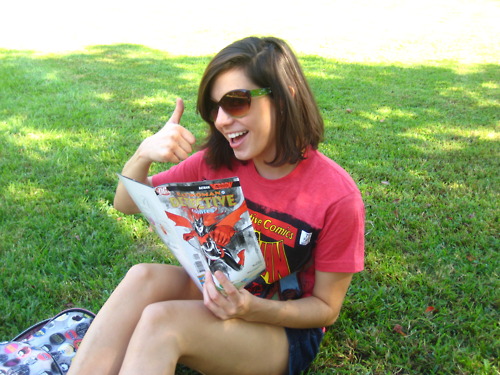 If you were not strongly advised to stay inside all weekend like we were, then you probably got to celebrate International Read Comics in Public Day yesterday! As a way to celebrate both Jack Kirby‘s birthday and show that women are a significant part of the fan base as well, women took to the streets and read comics in public, proving that this is, indeed, a very cool thing to do. Pictures are popping up all over the Internet, and after the jump, witness just a few of you.