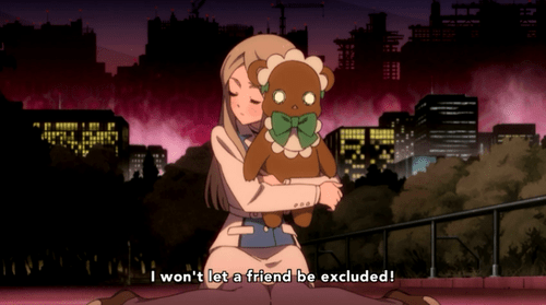 Along the way, Kureha Flashes Back to The Day We Met (History), when she felt someone “calling” her, so she passed through the lily garden and the Door to Friendship at its center and found the battered Ginko on the other side.