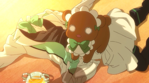 But wait! There’s no time to be sad! There’s a phone call from InvisibLeader Chouko, warning Kureha that the bears are after her. Kureha’s way chill response confirms Chouko’s suspicions that Kureha is harboring the bears, and she and her Stormtroopers bust into the house—only to find that Kureha and Lulu have already escaped.