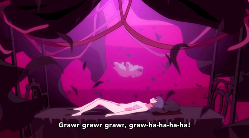 Repetition is a sneaky writer trick. It gets you to associate certain words or images with certain scenes or emotions, so that when you see the word/image again elsewhere it evokes those memories. At this point, “found” is basically my Puddle of Emotions switch. So thanks for that, Ikuhara.