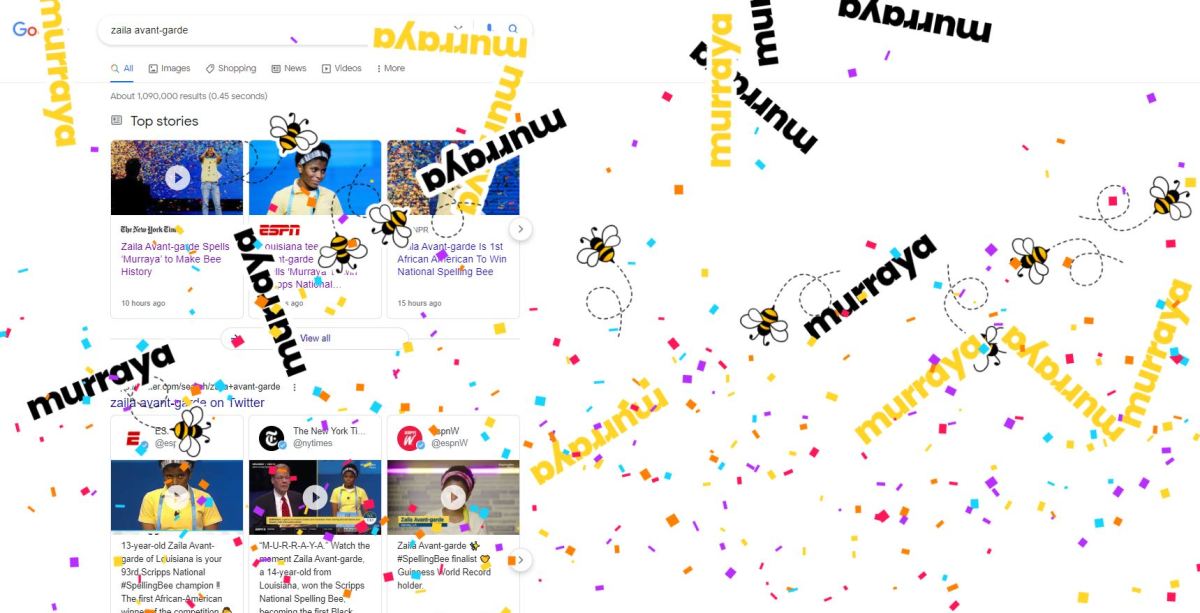If you type in the name Zaila Avant-garde or Scripps National Spelling Bee into your Google search bar today, you’ll see a downpour of confetti, some friendly bumblebees, and the word “Murraya.”